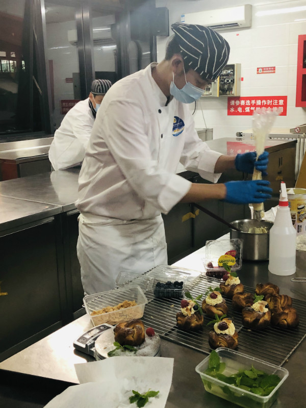 经过一周高强度的训练,终于迎来了赛场练兵2020年9月22日,选手们圆满完成了全国第一届职业技能大赛北京选拔赛烘焙项目和西式烹调项目比赛我院学生宋博闻获得烘焙项目第二名,李鑫宇获得烘焙项目第五名;黄晓鑫获得西式烹调项目第六名,孙宇获得西式烹调项目第八名的好成绩,学生们将获得相应的技能等级证书。