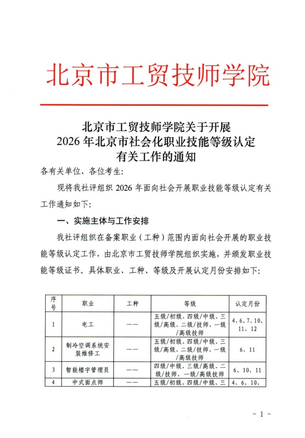 北京市工贸技师学院关于开展2026年北京市社会化职业技能等级认定有关工作的通知
